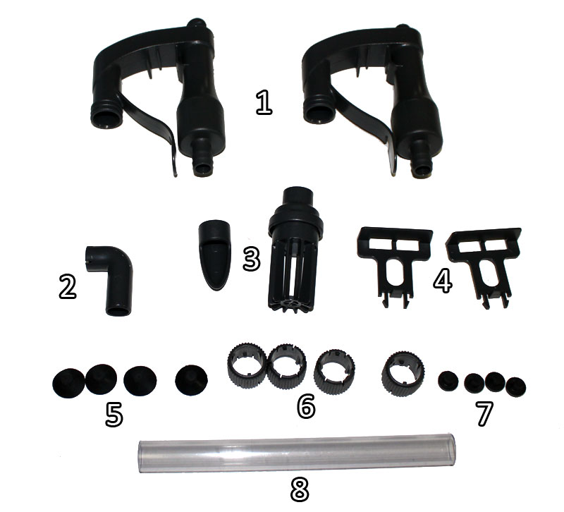 1.Заборное и выпускное колено – к ним подсоединяются шланги, идущие от фильтра