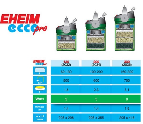 Серия EHEIM Ecco была разработана, чтобы заполнить эту пустоту. Чуть позже конструкция фильтров была модернизирована, вылечены «детские болезни», которые неизбежно сопровождают любую новую технику, и обновленная линейка фильтров получила название “Ecco Pro”.