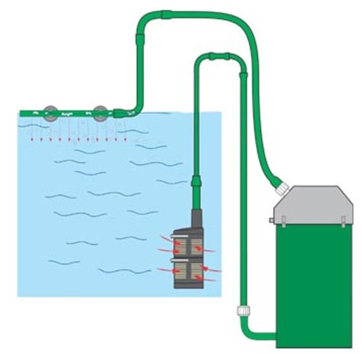 • Префильтр EHEIM, устанавливаемый в аквариуме. Да, у самого фильтра тоже есть губка префильтра, но для её очистки всё-таки надо останавливать фильтр, снимать голову, а после промывки запускать фильтр снова. Благодаря же выносному префильтру можно значительно увеличить интервалы между чистками фильтра, просто время от времени промывая губку префильтра. Этот префильтр устанавливается в аквариуме вместо штатной решётки водозаборника. Контейнеры с губками легко отщёлкиваются для регулярного промывания. Помните, что регулярно удаляя из аквариума механическую грязь, вы предотвращаете появление и рост нежелательных водорослей.
