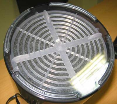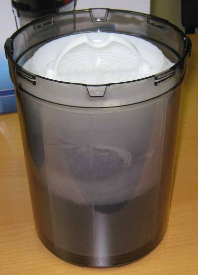 Фильтрующий отсек закрывается крышкой и устанавливается в корпус фильтра. На фото видно, что полупрозрачность корпуса позволяет судить о загрязнённости губок тонкой очистки.