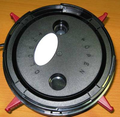 Чтобы добраться до внутренностей головы, и очистить их, сначала надо снять нижнюю крышку – просто повернув её, вставив пальцы в круглые углубления, в соответствии со стрелками (“Open” – открыть, “Close” – закрыть).