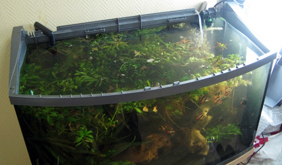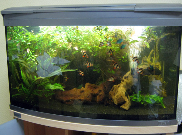 Аквариум у нас, можно сказать, классический – довольно много растений, десятка полтора барбусов (суматранские, включая «мшистых»), несколько корридорасов , анциструсов и 1 лабео биколор.