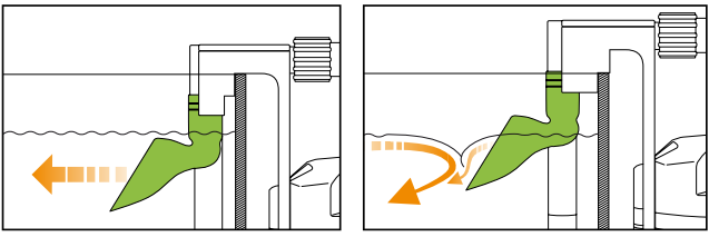 Дневное положение: Если фильтр установлен в нижнем положении, носик Lily Pipe полностью находится под водой. Благодаря своей развернутой форме Lily Pipe создает нежный, естественный и удобный для растений поток воды, что поддерживает умеренный газообмен, т. е. CO2, необходимый для растений, не вытесняется чрезмерно.