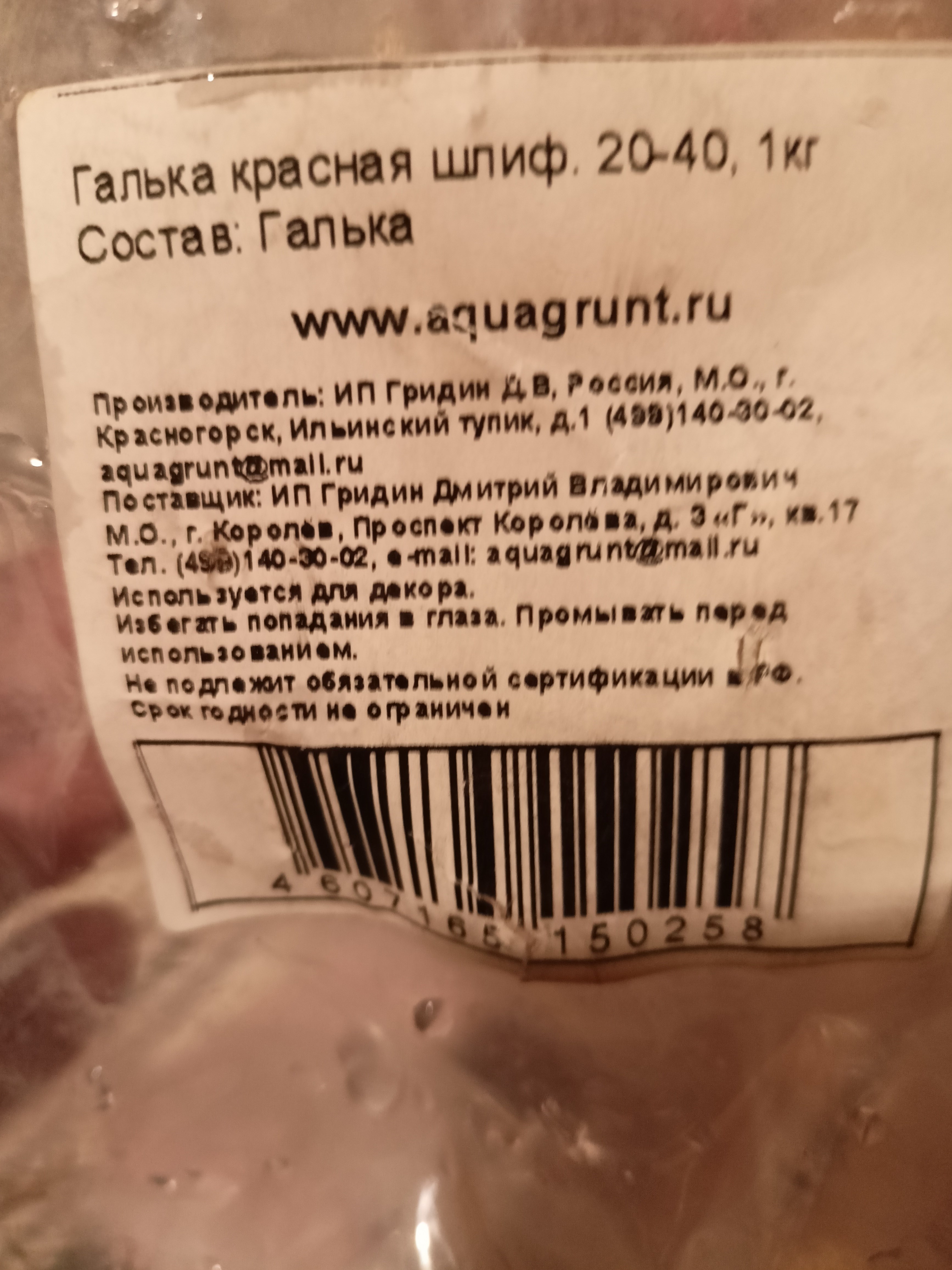 ЕкатеринаПолученные мной красные камни не соответствуют описанию. Оказанная галька, но не шлифованная, в отличии от двух других (белой и полосатой, которыми осени довольна!), купленных мною вариантов.